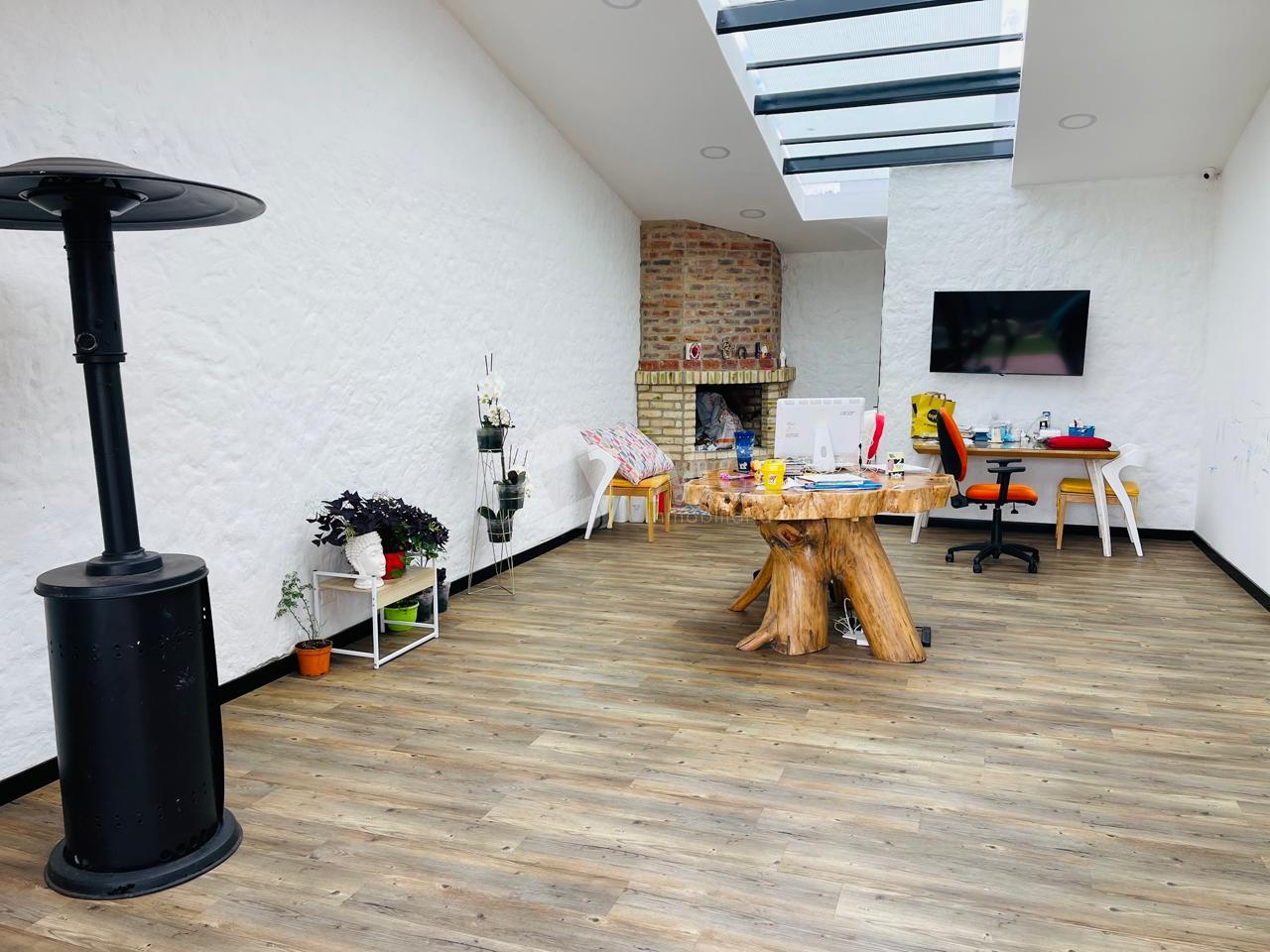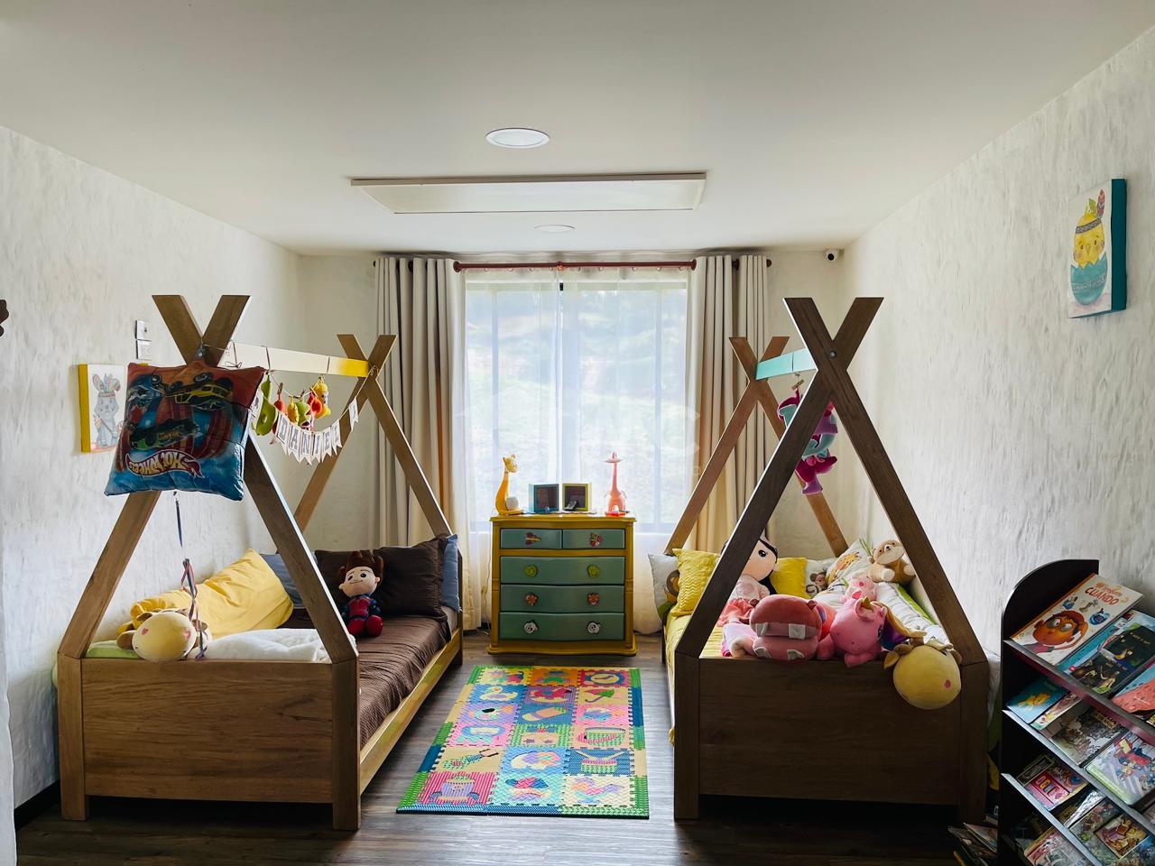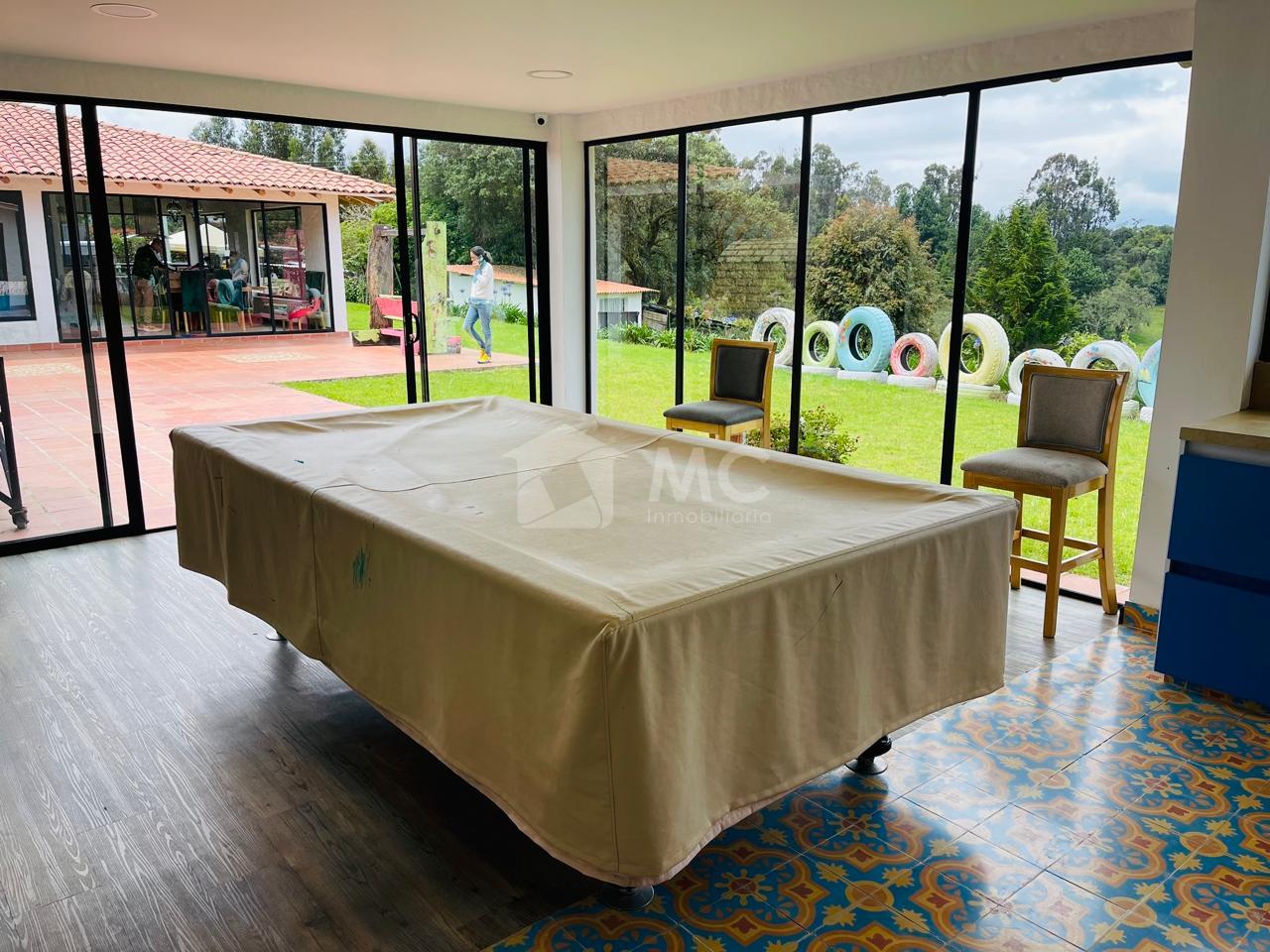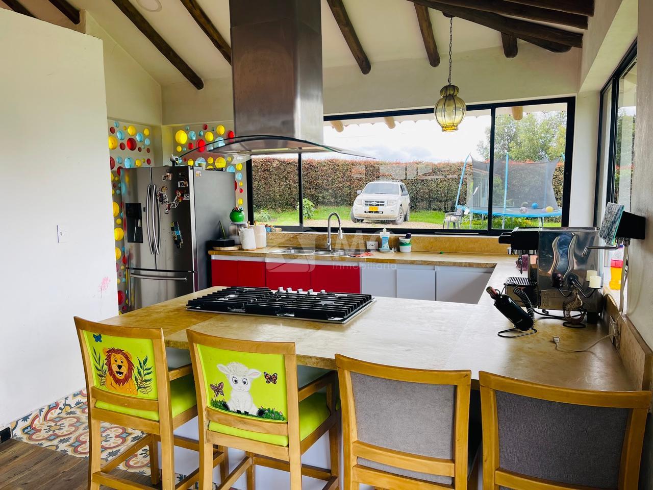 Casa principal. Tiene un área de 240 m2 en un solo nivel distribuida en 3 alcobas cada una con baño, cocina abierta, sala con chimenea, zona de lavado de 20 m2 y un baño auxiliar.