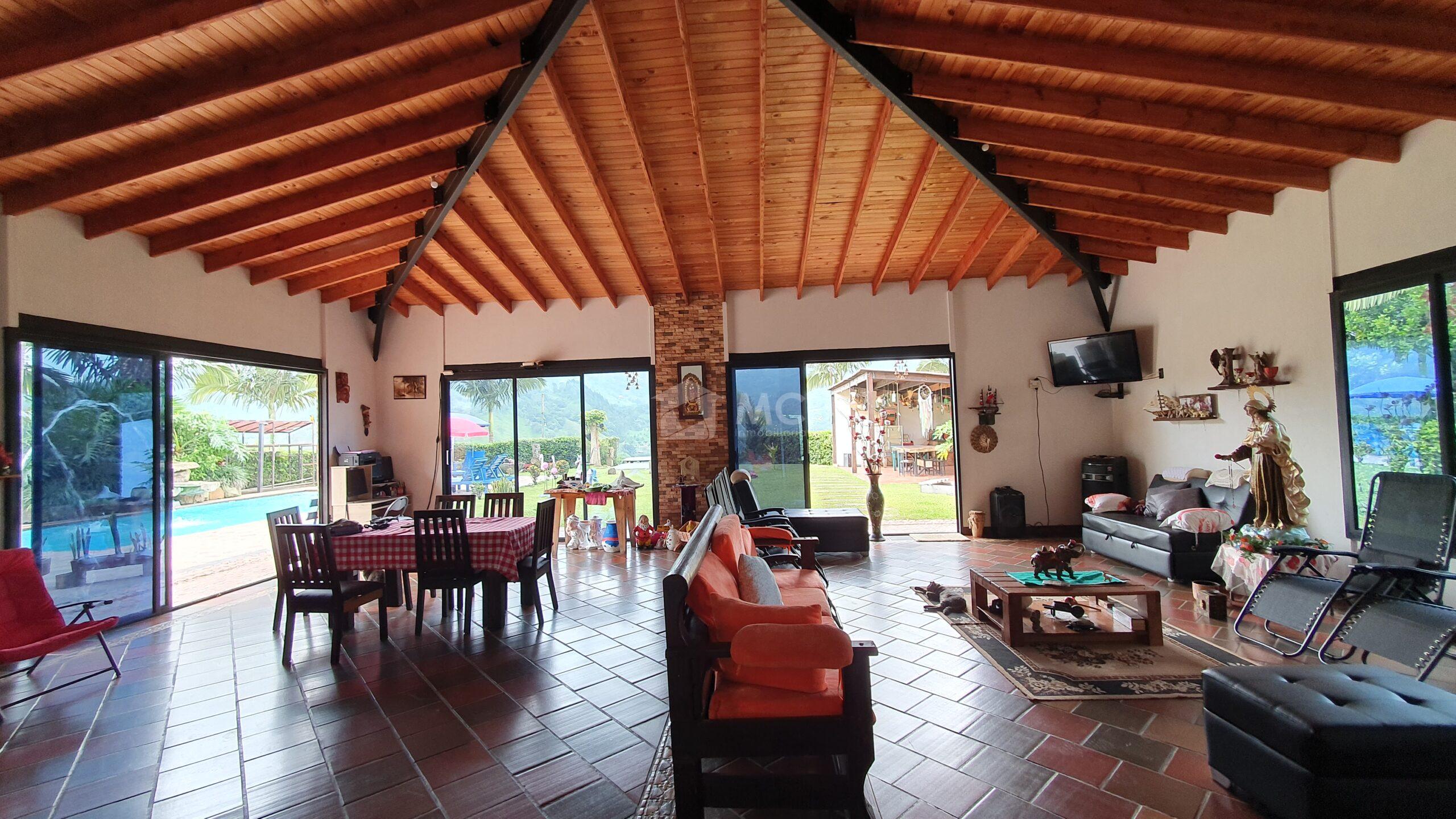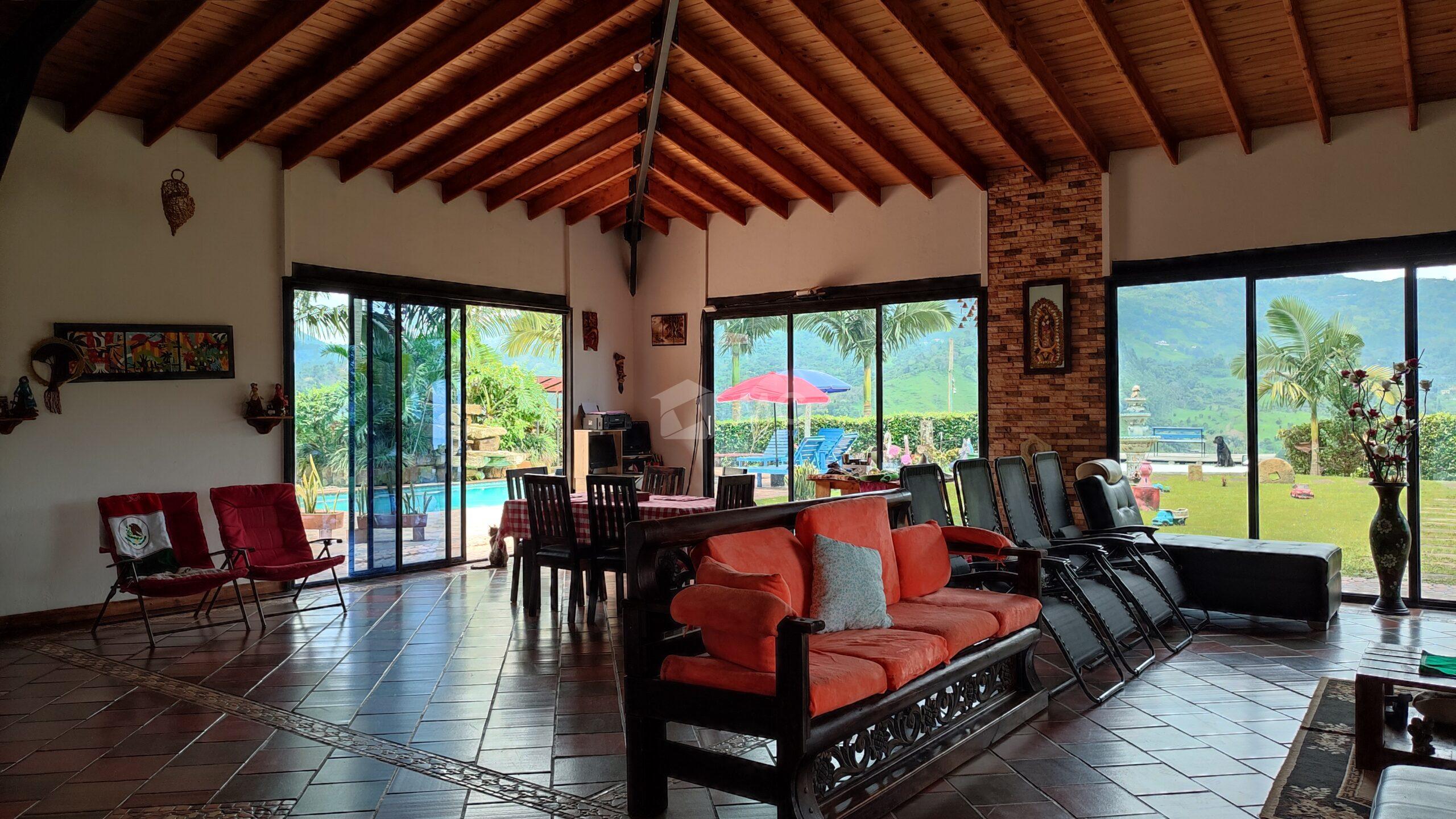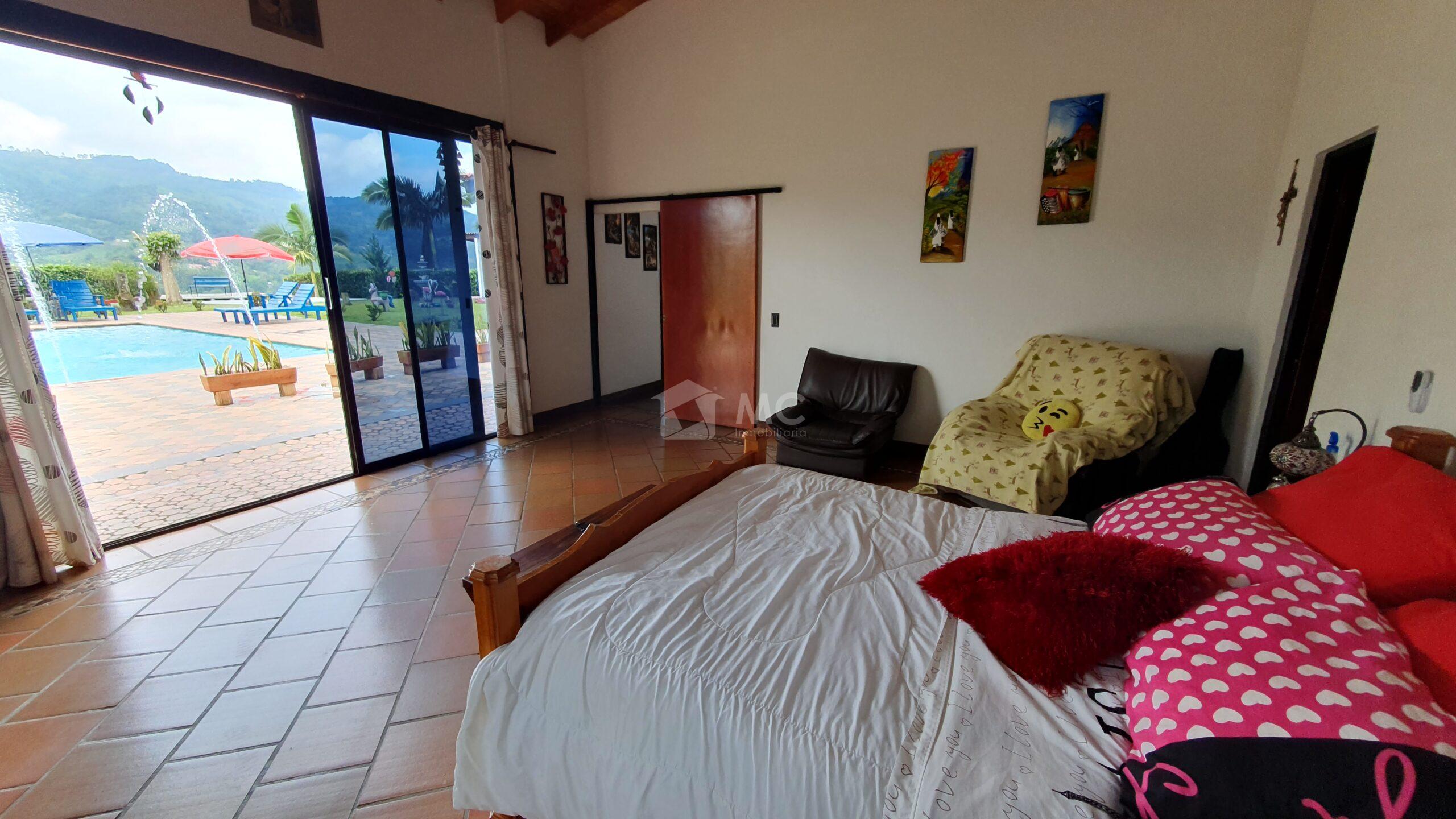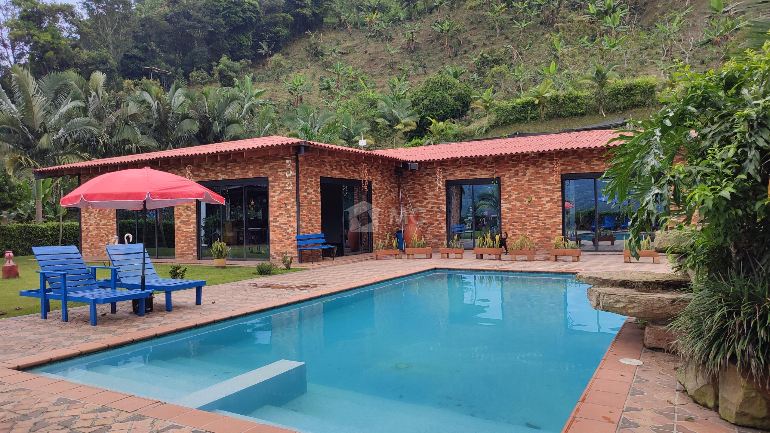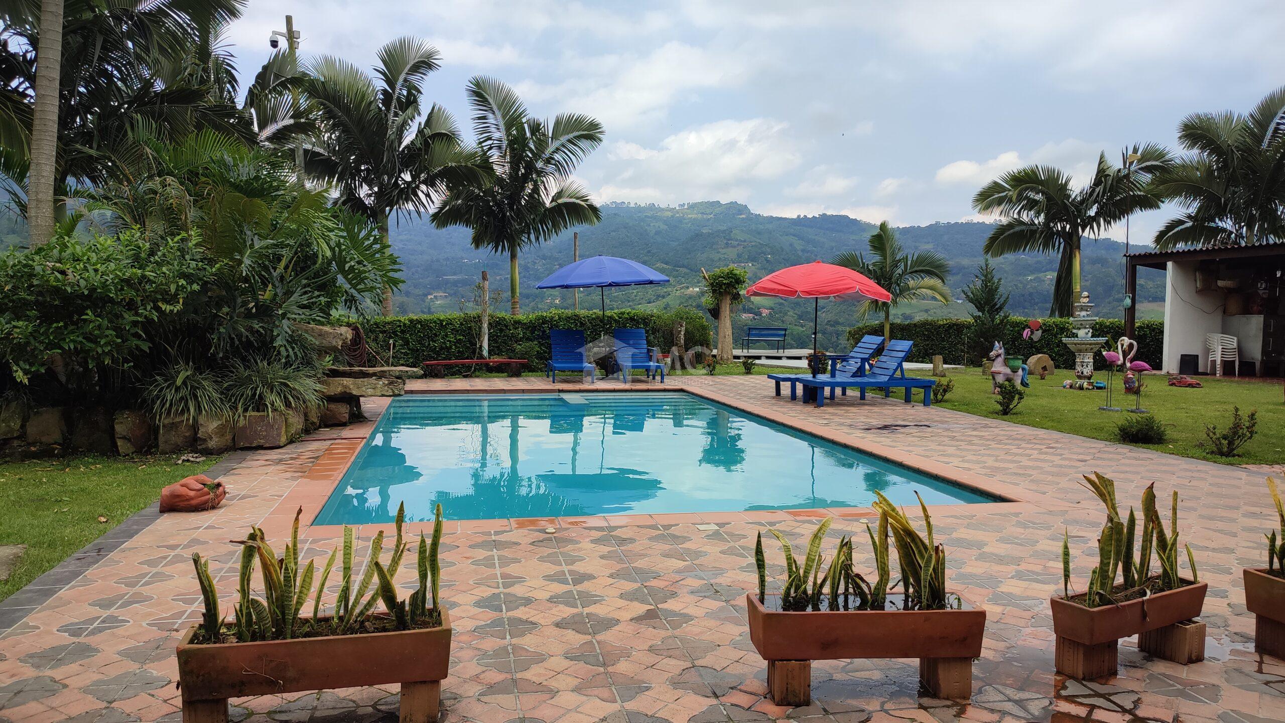 Espectacular finca, cuenta con cancha de minitejo, bodega, lago de peces, 7.000 plantas de café, BBQ, piscina, casa principal y dos cabañas para huéspedes o qué podrás arrendar.