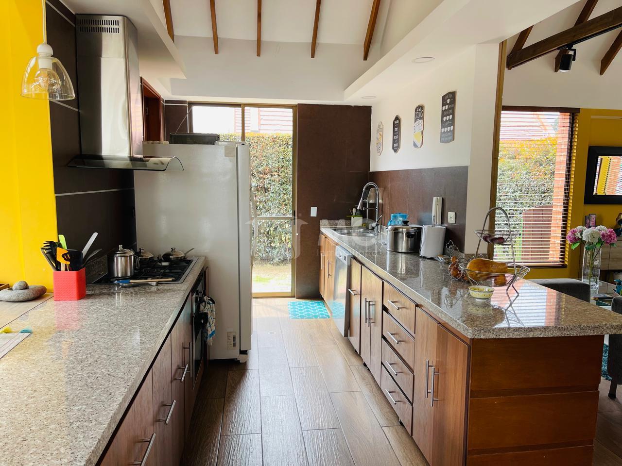 La casa consta de: primer piso: 3 alcobas con closet, 2 baños, sala comedor, cocina tipo americana, BBQ con una pergola de 39 metros, patio de ropas, segundo piso: altillo, una alcoba con walking closet, y un baño, terraza. zona exterior: parqueaderos para 4 vehículos, paequeaderos de visitantes, cancha de tenis, cancha múltiple, cancha de mini futbol, parque infantil, salon social, zonas verdes, con todos los servicios, administración $985.000